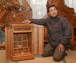 近年は、マンション向けのコンパクトな仏壇、紫檀など他の素材を組み合せた家具など、ニーズに合わせた家具作りを積極的に展開。また古い家具や建具を生かした家具の再生も手掛けます。