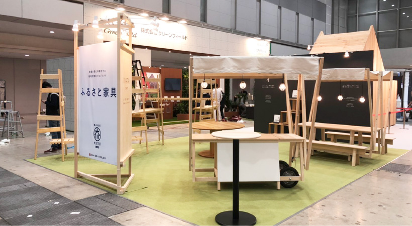 | ジャパンホームショーは、建築に関わる関係者が全国から一堂に集う日本最大級の住まいに関する専門展示会です。 つい先日、11月13日(水)〜15日(金)に東京ビッグサイト西展示棟にて開催されたジャパンホームショーに、当組合の地域材開発委員会より出展いたしました。 例年開発展示を進めてきた地域材開発プロジェクト「SOUSEI」や、ふるさと家具の展示はもちろんのこと、今回は新しく3つの商品開発と展示を行いました。 |